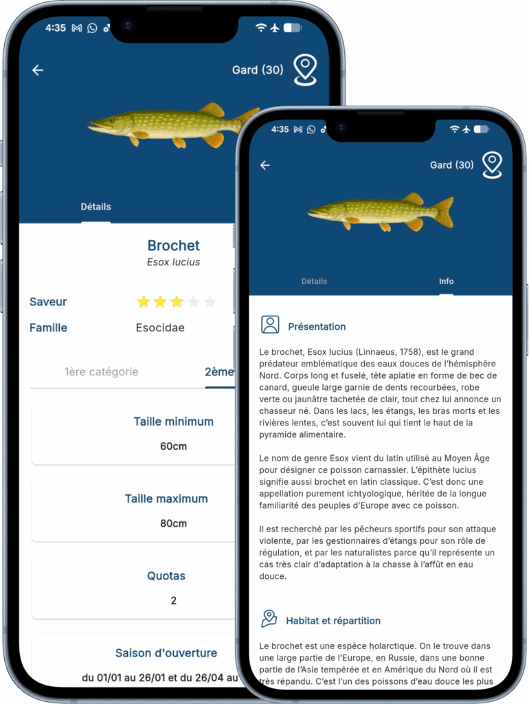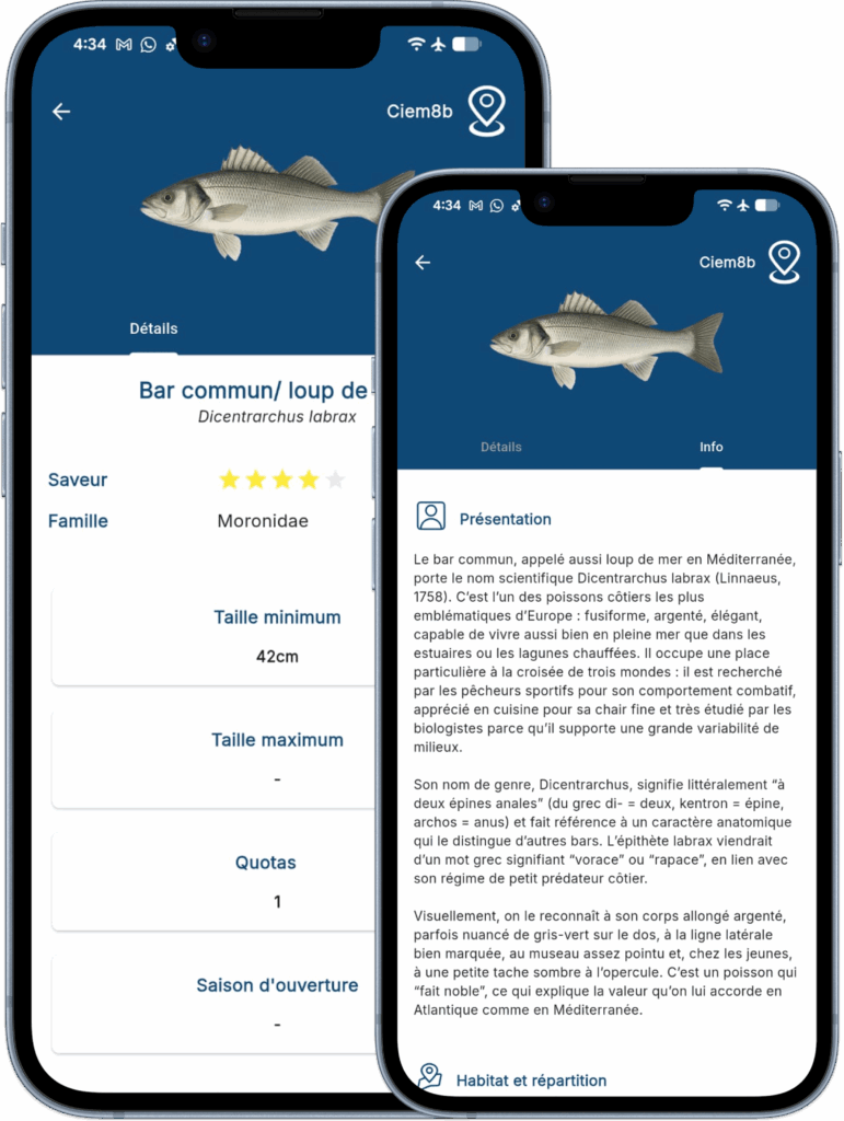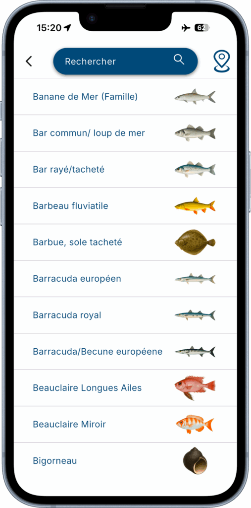 Gratuite et accessible même sans connexion, cette application transforme votre expérience de pêche. Elle vous offre des outils indispensables : un système d’identification des espèces basé sur des critères physiques, une liste complète avec une recherche simplifiée, et des fiches détaillées pour chaque espèce, incluant toutes les législations en vigueur. Que vous soyez en bord de mer ou en rivière, cette application est bien plus qu’un guide : c’est un compagnon essentiel pour pêcher en toute sérénité et dans le respect des règles.